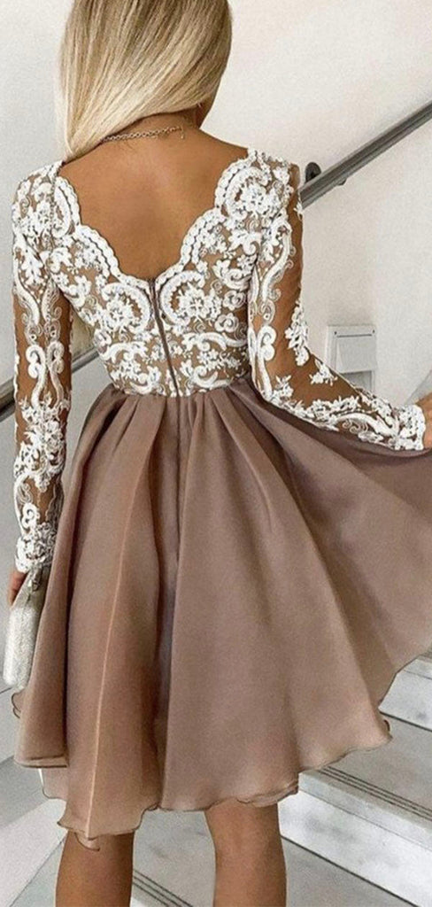 A-line Lace Long Sleeves Chic Modest Sparkly Short Homecoming Dresses HD005