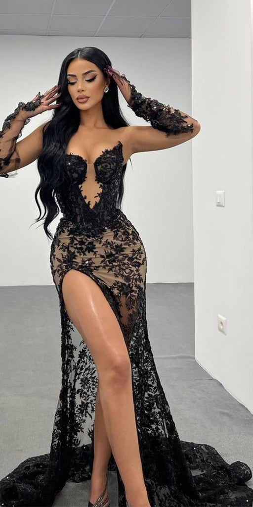 Mermaid Black Lace Sexy Party Modest Women Evening Long Prom Dresses PD1525